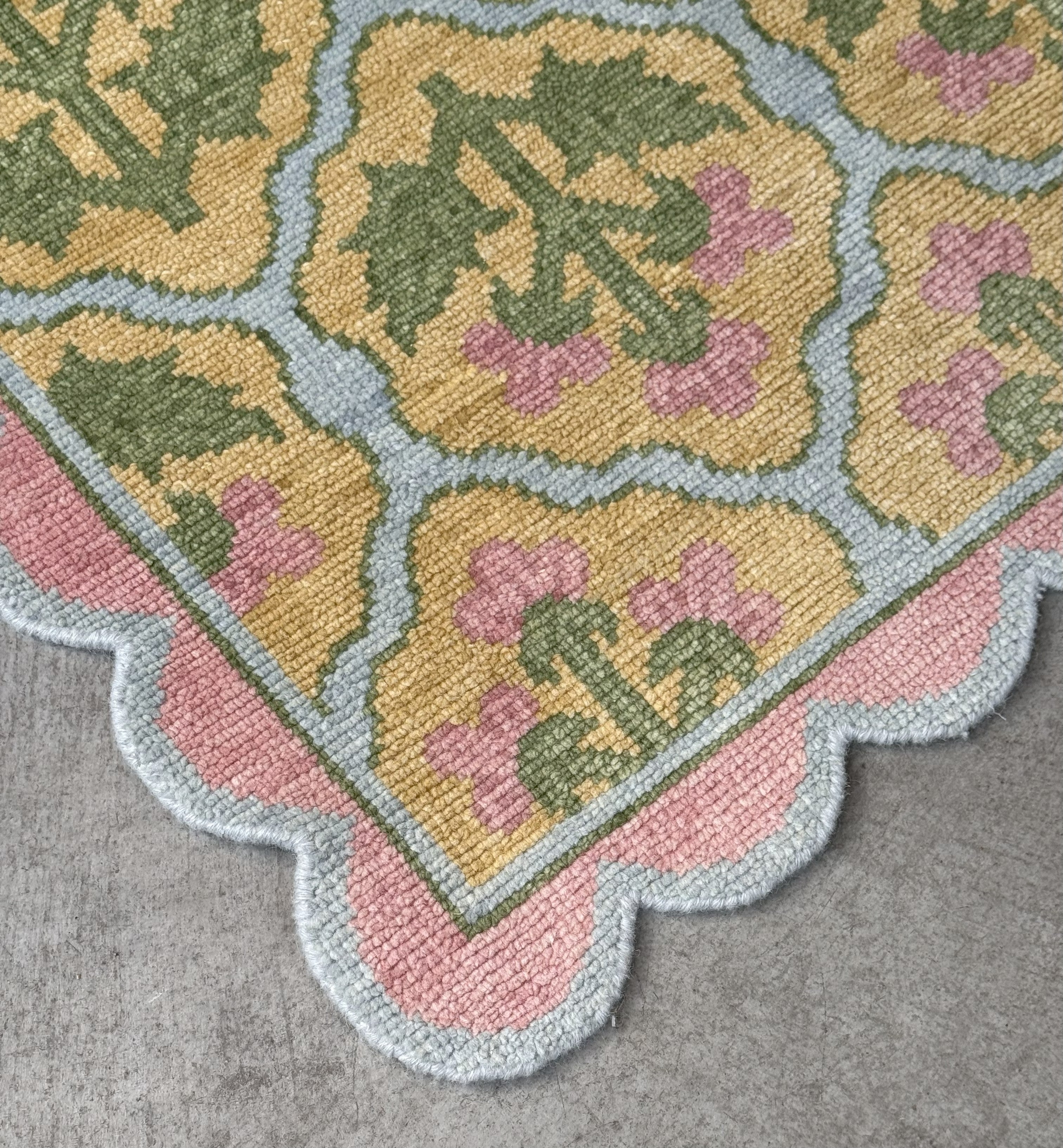 Please note that our rugs are handcrafted using traditional techniques. Each rug is made to order, and every color of yarn is hand-dyed in small batches. Due to this artisanal process, slight variations in color, texture, and design may occur. Colors may vary by up to 10%, which is a natural result of the hand-dyeing process. These unique characteristics are part of the beauty and authenticity of handmade goods and are not considered defects.